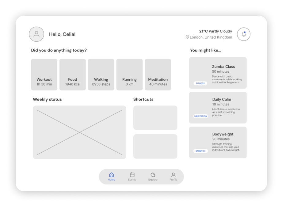 I want to create a fitness coaching tool accessible to everyone and ease this experience for users who don’t have much experience with technology. All users should enjoy taking advantage of new technologies without feeling lost while using them.