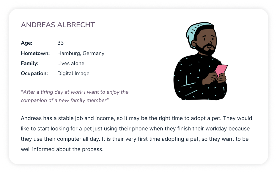 Helping Paws is a regional animal shelter. Helping Paws strives to help stray animals to find an ideal home for them. The adoption process can be a little complicated, so they want to make sure users are well informed all along the process while making sure future animal owners are suitable for these pets.