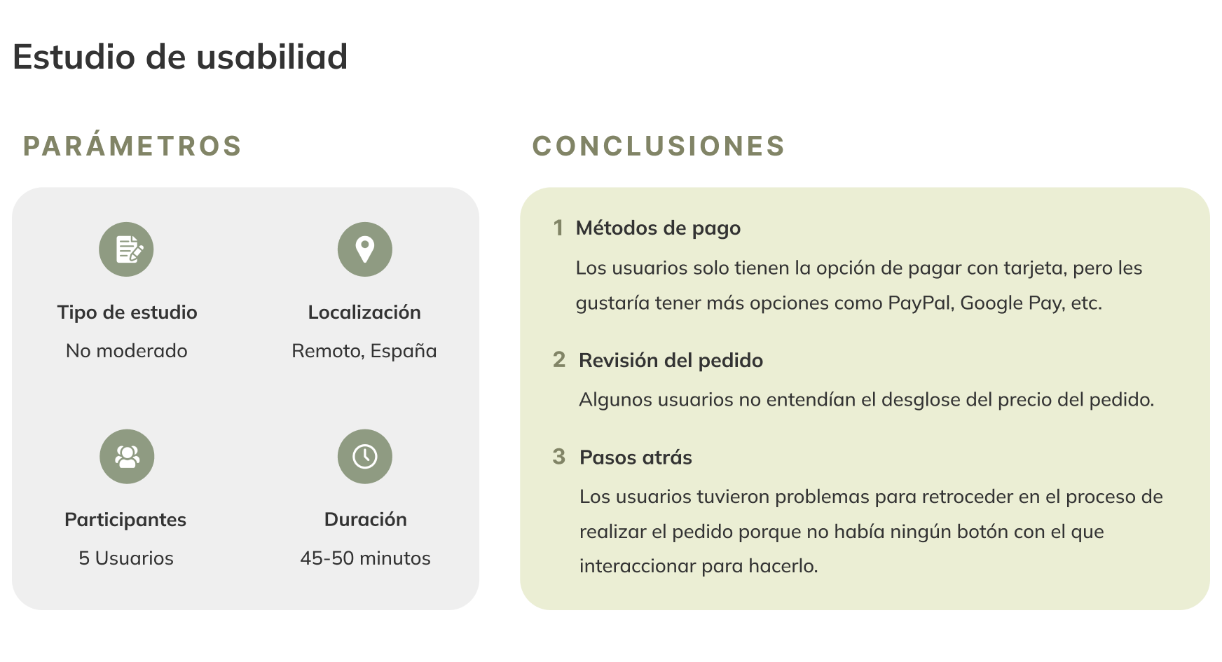 2. Partiendo del tema de que: algunos usuarios tienen problemas retrocediendo en los pasos durante el proceso de finalizar el pedido, un insight o conclusión es: los usuarios necesitan un botón en la página para poder tomar pasos atrás en caso de ser necesario.