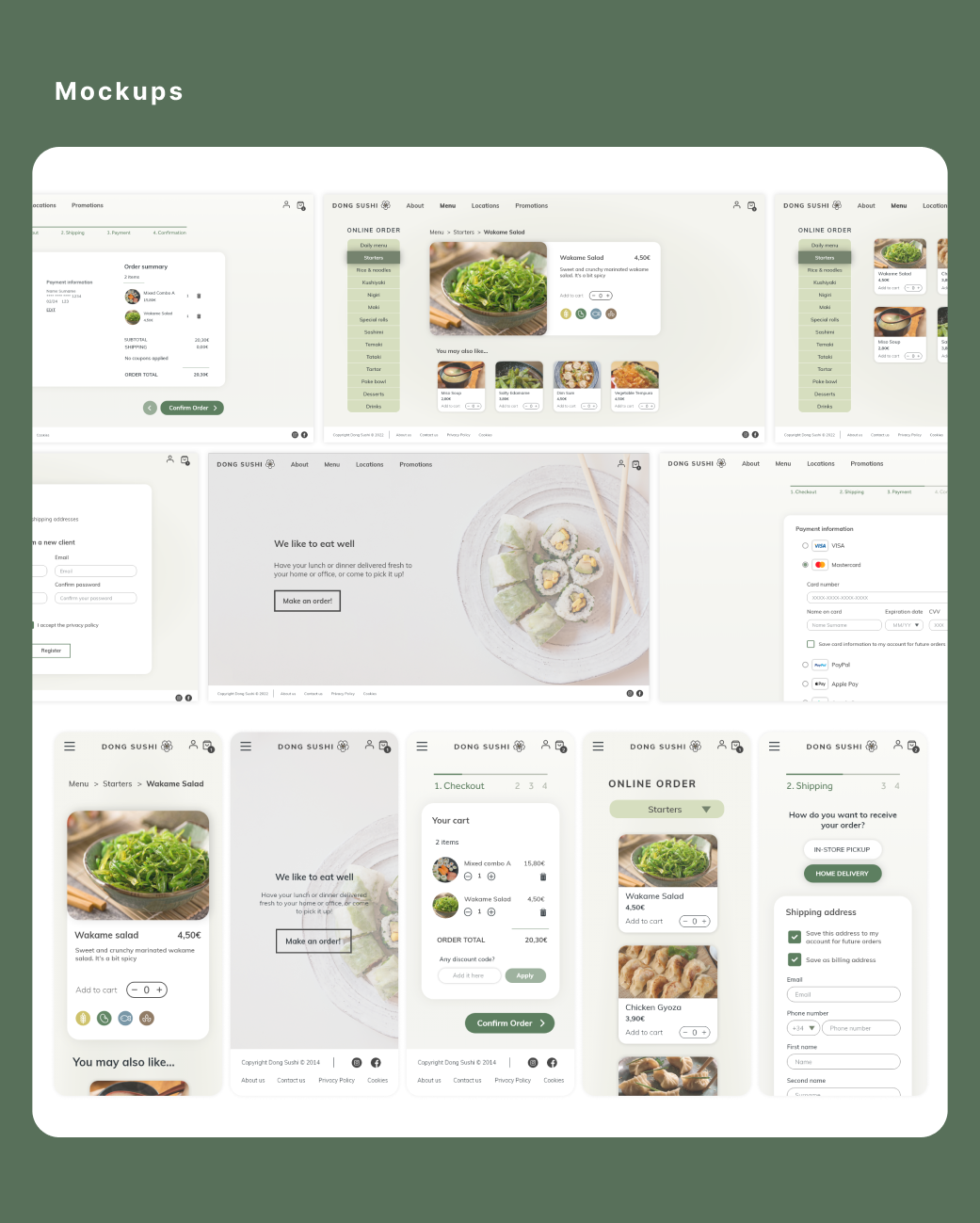 Este proyecto consiste en el rediseño de la página web para el restaurante Dong Sushi, cuyo objetivo es que lo clientes puedan hacer sus pedidos online sin problemas. Dong Sushi es un restaurante que ofrece una calidad excepcional en comida japonesa con sus platos recién hechos. Con este nuevo diseño, los clientes podrán realizar pedidos online de forma rápida y sencilla, a la vez ofrecer tener una experiencia agradable para el usuario. Esta futura página web funciona perfectamente en distintos dispositivos con el propósito de que los usuarios puedan pedir comida en cualquier momento y lugar.