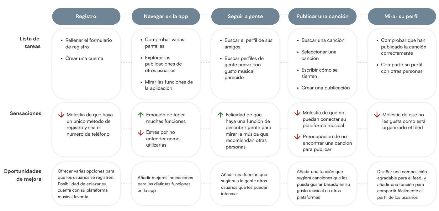 2. Partiendo del tema de que: casi todos los usuarios estaban confundidos acerca de dónde encontrar las notificaciones y sus canciones guardadas, un insight o conclusión es: los usuarios necesitan mejores indicaciones para acceder a sus canciones guardadas en su perfil, y también dónde comprobar las notificaciones.