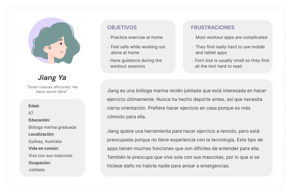 Gym Buddy es un servicio de entrenamiento físico para todo el mundo, diseñado para ayudar a aquellas personas que son nuevas con la tecnología a disfrutar de la experiencia sin que les resulte difícil utilizar nuestro servicio en distintos dispositivos. Muchos usuarios no se sienten cómodos yendo al gimnasio, y prefieren hacer ejercicio en sus casas. Si estos usuarios no tienen experiencia previa realizando actividades físicas, necesitarán orientación durante el proceso. Quiero crear una herramienta para hacer ejercicio que sea accesible para todo el mundo, y sobre todo, facilitarla experiencia a aquellos que no tienen mucha experiencia con teléfonos, tablets u ordenadores. Todos los usuarios deberían poder disfrutar de las nuevas tecnologías sin sentirse perdidos al utilizarlas.